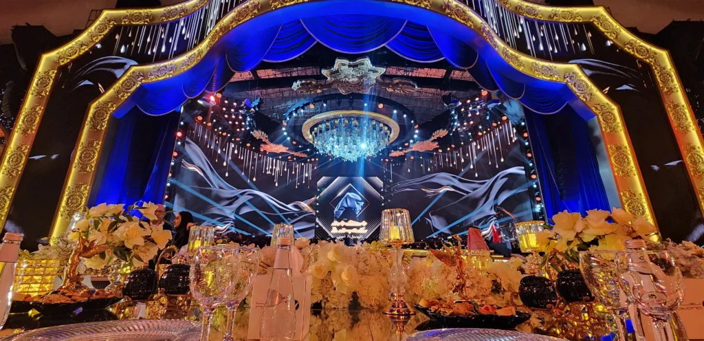 The event featured a futuristic stage setup with synchronized lighting and video projections, showcasing the latest advancements in technology and engaging attendees in a unique way.